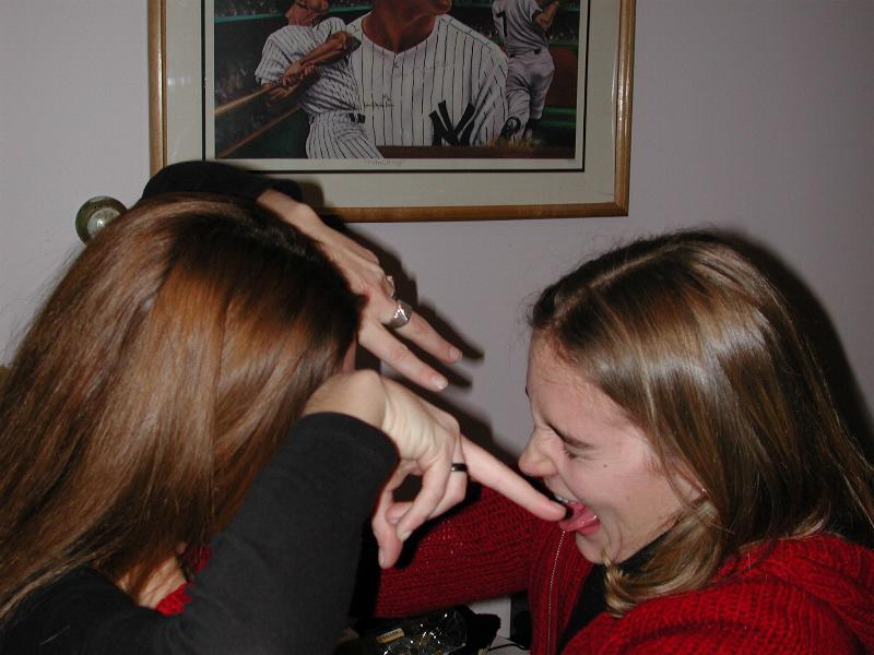 Krista poking Kate in the eyes