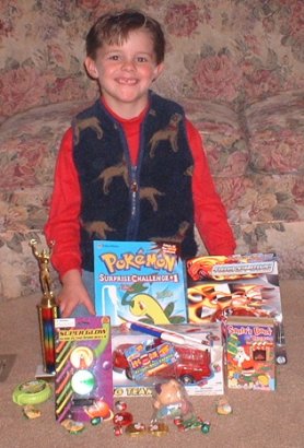 Our 3&Up King, Cade, with his prizes ! Gotta Catch'em all !!!