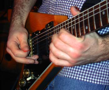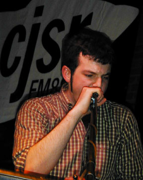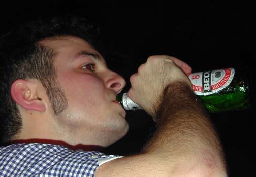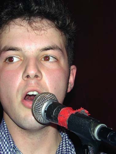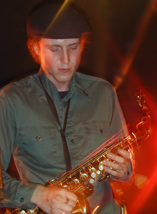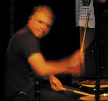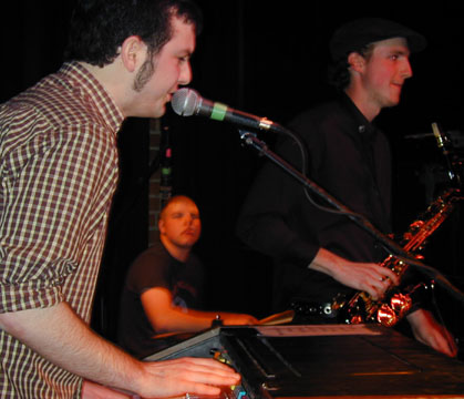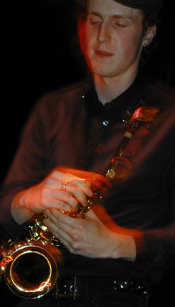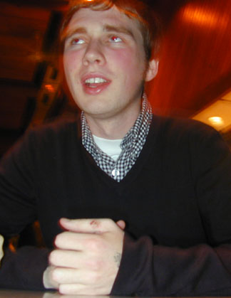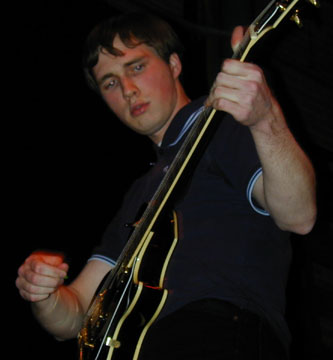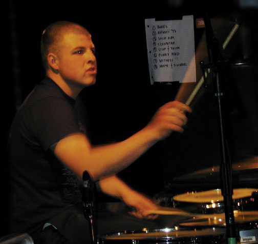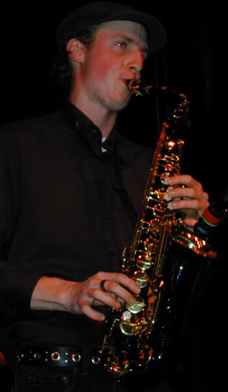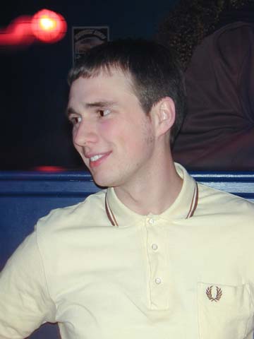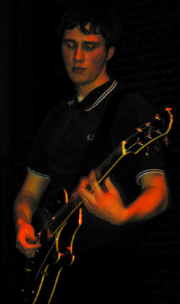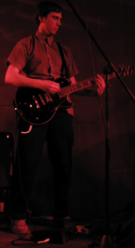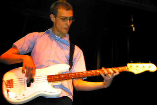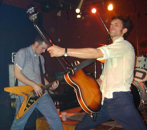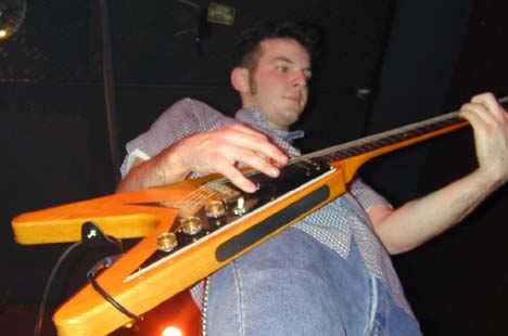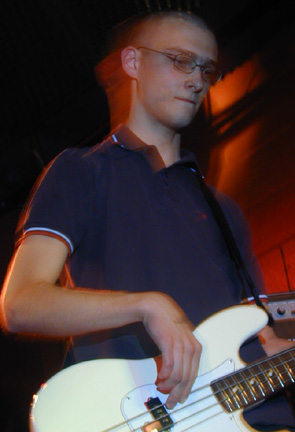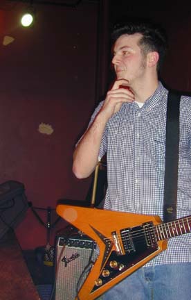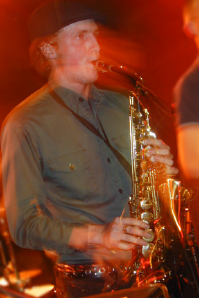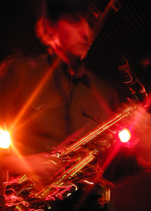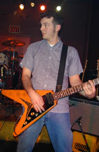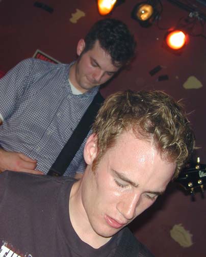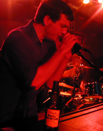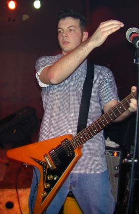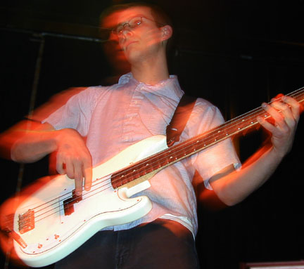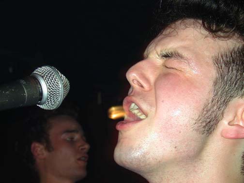 To get this picture, I had to climb onto a railing at the edge of the stage. A bouncer came to drag me down. I was walking away, past the skinhead table, when one of the skins gave me a chair to stand on. I dragged it back and stood exactly where I was before, able to get this last shot before the bouncer told me to get down again.