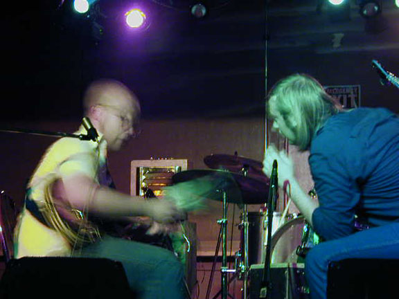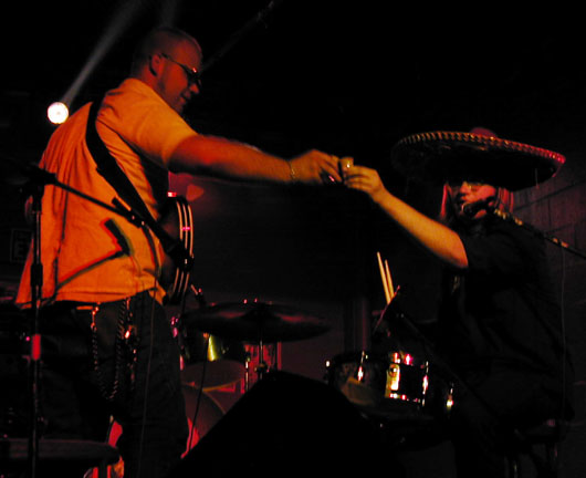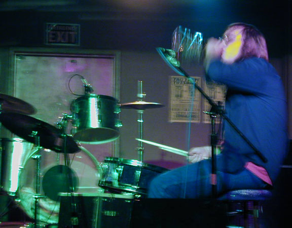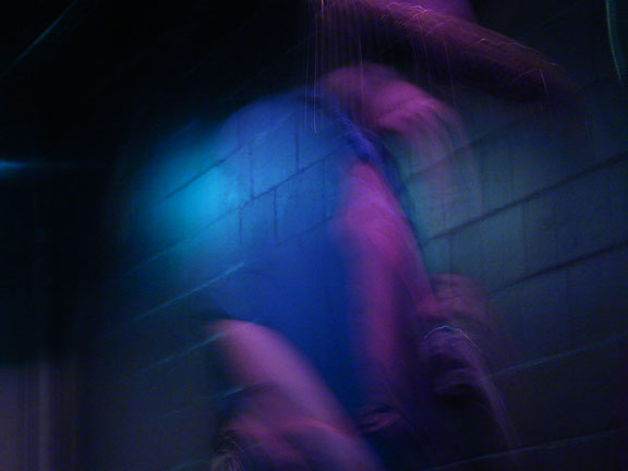 I captured Rob in mid-leap as he leaves the stage. Ted stays on, too drunk to move or realise his brother has left him there.