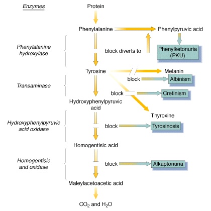 Phenylketonuria - PKU - genetic condition in which individual lacks the