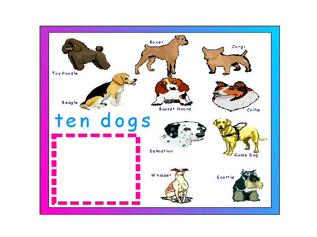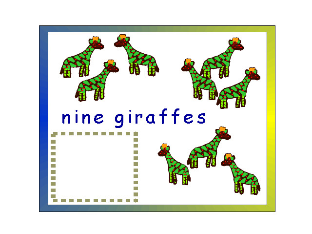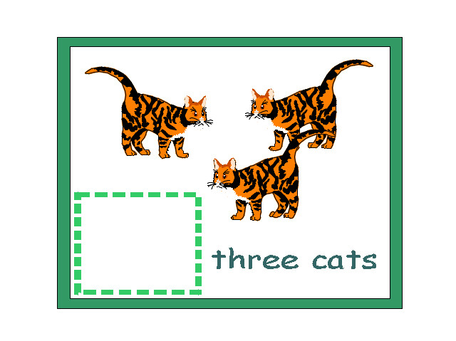 Print large animal squares on heavy card stock. (Laminate/apply clear contact paper to each individual square or to the entire board.) Glue a small square of velcro (rough nylon side) in the middle of each dotted square inside the animal square. Glue to poster board as per pattern shown. Print on heavy card stock, laminate and cut out each small numbered square. Glue a small square of velcro (soft fuzzy side) to the back of each numbered square (in the middle). In the center of the board, glue 10 small pieces of velcro (rough nylon side) where indicated, to store the numbered squares when they are not in use. Click here to print Numbers 1-5; Numbers 6-10 Animal Number Challenge Board Pattern: Click on each animal square for a full size printable page.