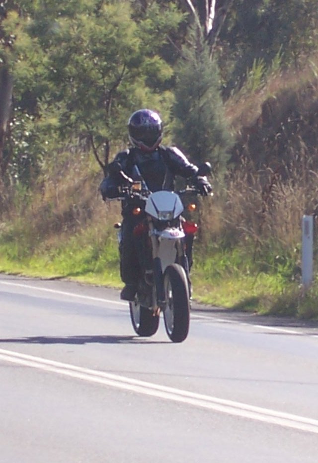Loft the front wheel in 1st, 2nd & 3rd gear, very