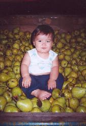 | Jeremy at 8 months | In a bin of pears |