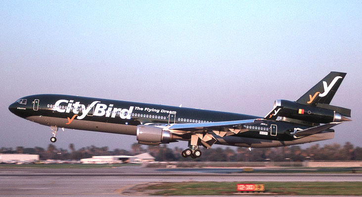 City Bird ordered and took delivery of three MD-11s. The last two though, were wet leased to Sabena and delivered from Long Beach wearing full Sabena colors and titles. Both aircraft were eventually returned to City Bird and immediately retired being flown to Victorville, California (VCV) in the Mojave Desert to await their next assignments. The aircraft pictured above now operates with World Airways as N279WA the other aircraft OO-CTC (48780/624) now operates with Finnair as OH-LGE.