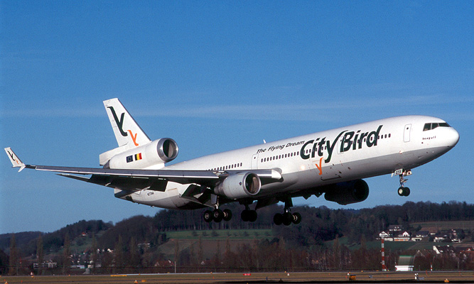 City Bird leased two MD-11s from World Airways (N273WA and N280WA) though at different times. In the above photo we see N273WA 'Seagull' about to land at Zurich (ZRH)