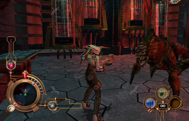 So apart from being a Dreamcast title that never was, what exactly IS Gun Valkyrie?? Well it's a fast action packed shoot em up in third person perspective set in the future, and plays like a mix of Tomb Raider and Outrigger put with greater speed and mobility!! With your spacesuit and anti-gravity boots, plus a load of hefty weapons, you bounce around in all angles, floating in the air, running up the walls just blowing everything up!!