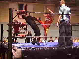 Hiztory takes out one of the best Chicago Independent wrestlers in the business (Stryc-9)with a front drop kick to put Stryc-9's head into a steel chair in the corner