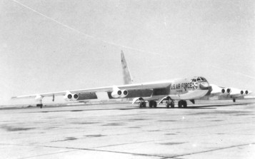 In 1959 the 95th Converted to B-52Bs, lost the 335th and 336th and gained the 917 Aerial Refueling Squadron, along with KC-135As. At its peak the wing had nineteen B-52s and eight KC-135s. The 95th participated in regular REFLEX excersizes to Andersen AFB, Guam during its existence. In the September, 1965 issue of National Geographic (pg. 308) is a photo of B-52s standing alert on Guam. At least three 95th BW birds are visible. In late 1965 the Department of the Air Force announced that the B-52Bs in service would be retired. This was due to several reasons, one being that with the build up in Viet Nam spare parts for BUFFs could become scarce. The wing lost its B-52s in 1966 and officially inactivated on June 26. With that deactivation, Biggs AFB was closed and the field turned over to the Army.