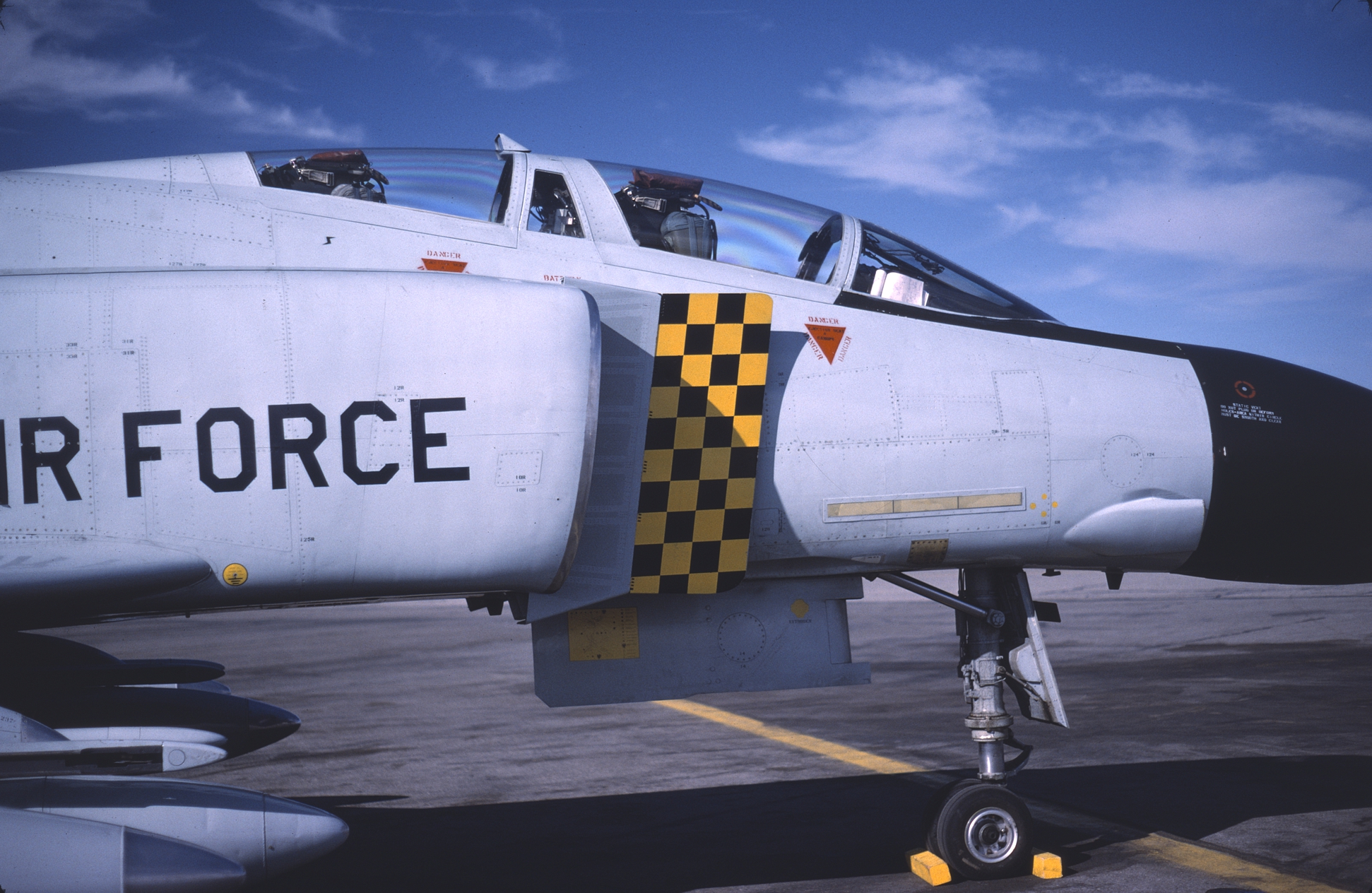 All good things come to an end, and with the arrival of F-4Ds the markings were toned down completely. The checker are still there, but no longer in Yellow on 65-0598 at AMARC. 65-0730 simply has "Michigan" in yellow on the tail. (CB)