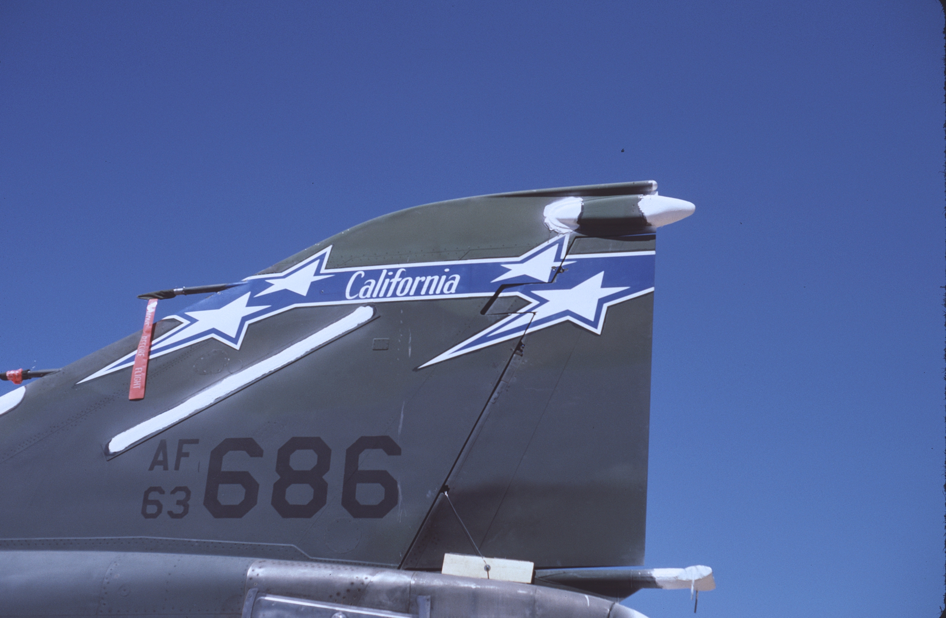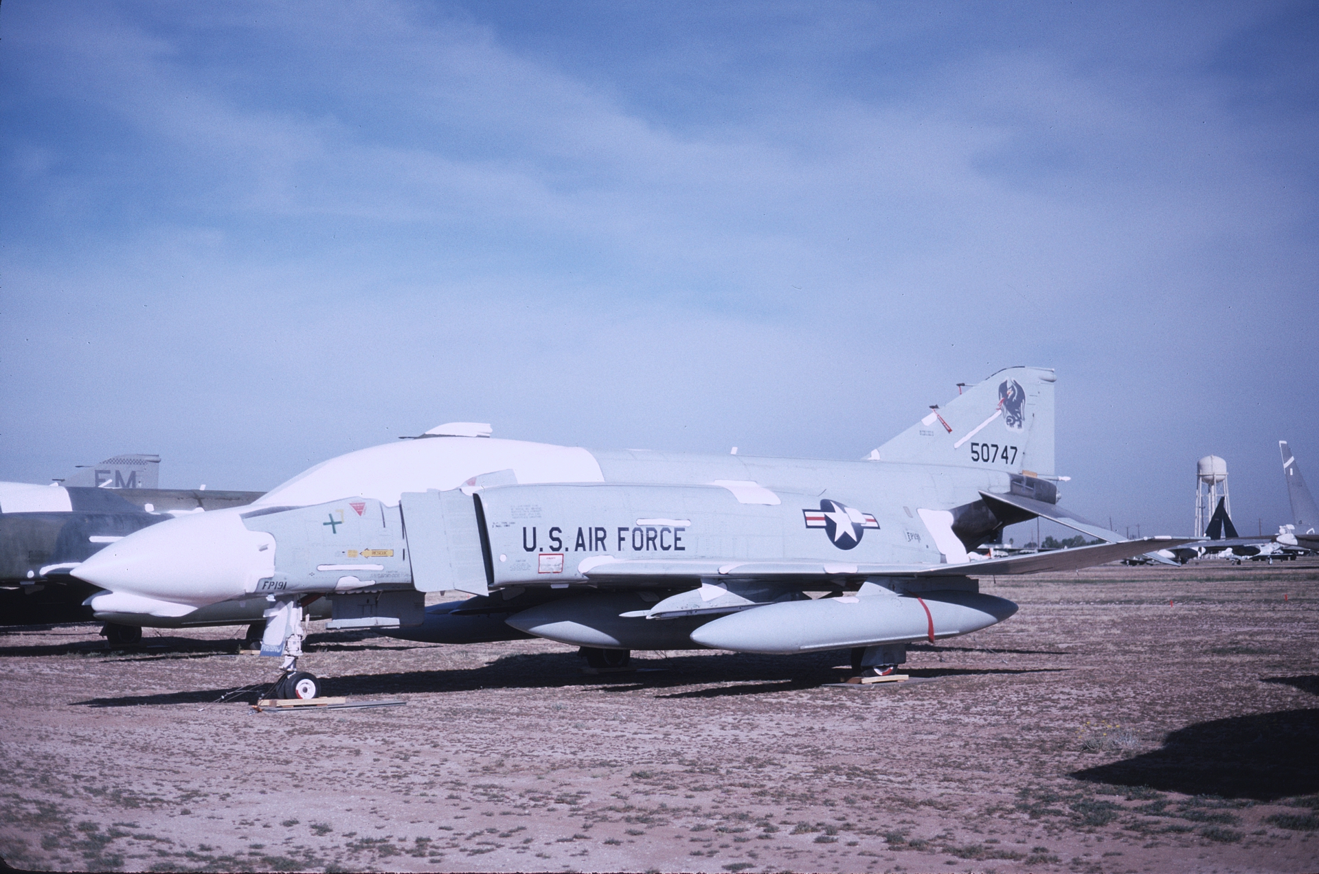 The 194th traded in their F-106s for F-4Ds in the 1980s'. Though not as attractive as the red and white tail with the California bear carried on the Sixs, the Griffin does look good on the Phantom. 65-0747 at AMARC. (CB)