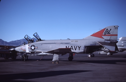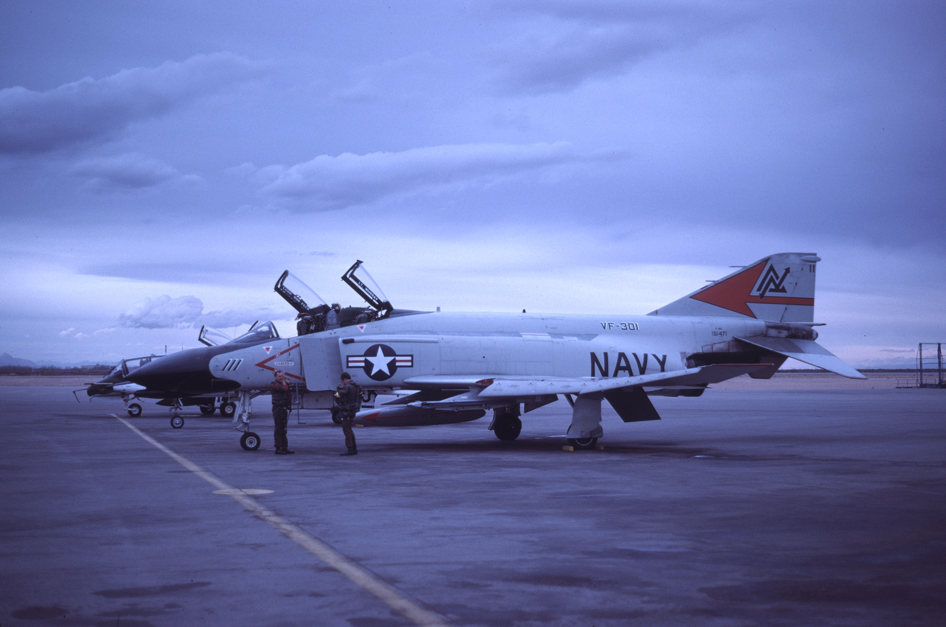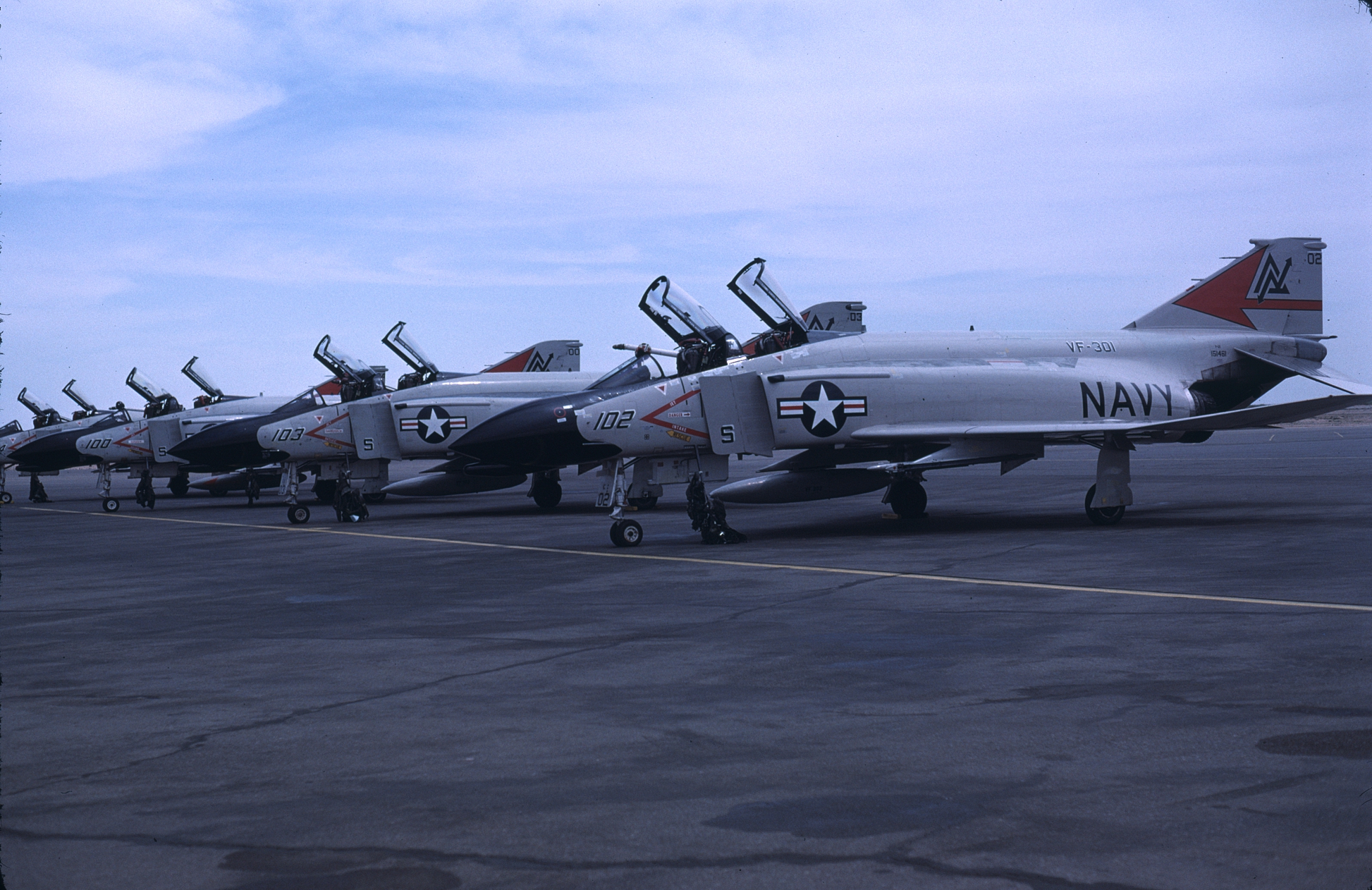 VF-301 transitioned from Crusaders to Phantoms when the unit started flying the F-4B in 1974. They only kept the B until 1975 when they were traded for the F-4N. The Devil's Disiples tenure with the F-4N was only five years when the F-4S replaced that model of the Phantom. Along with VF-302 the unit was based at NAS Mirimar.
