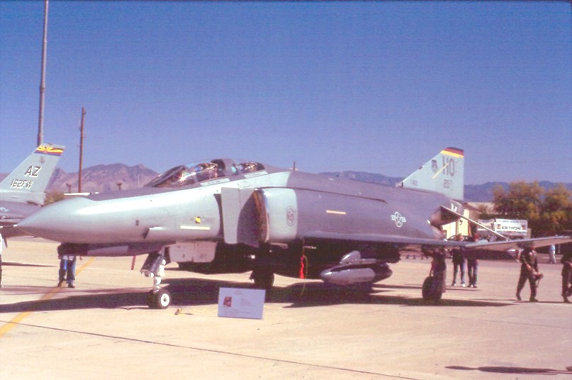 F-4F 72-1163 cooking in the sun at the Davis-Monthan open house in April, 2002. The left side of the F-4s carry the 20th FS emblem. (CB)