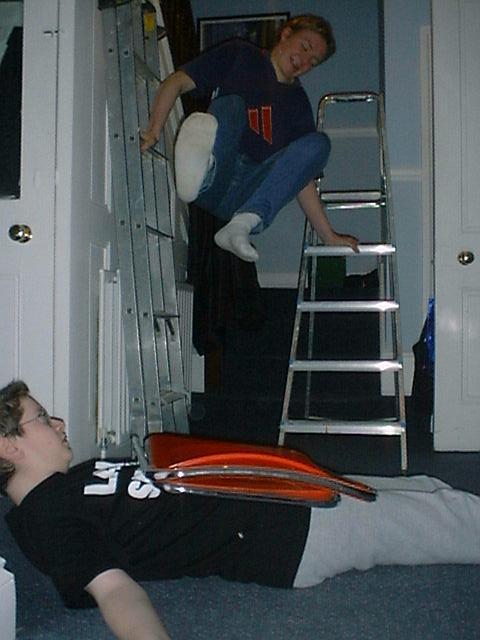 Tramp leg drop ooff a ladder