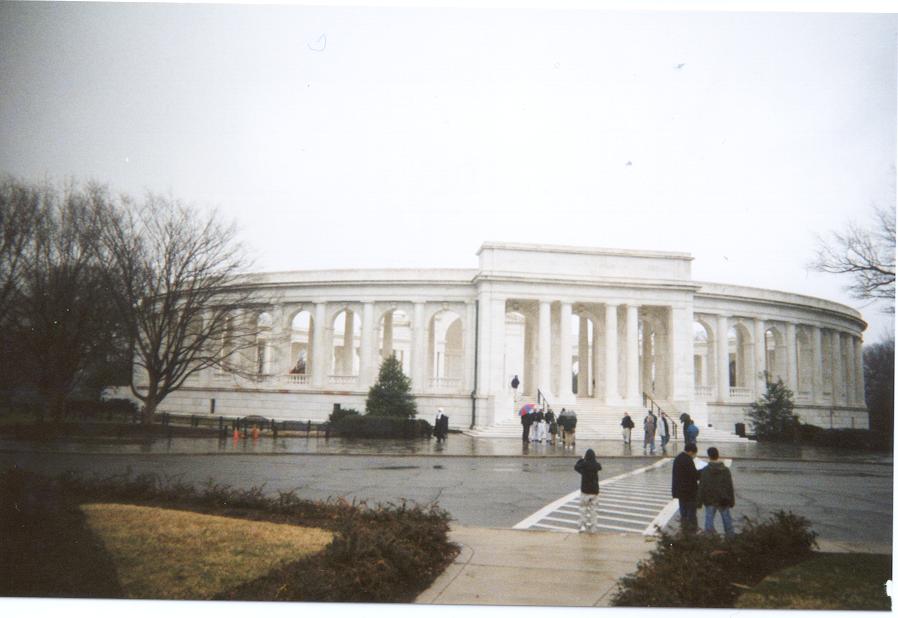 Here is the colleseum-thingy..The Tomb of the Unknown Soldir is in the back. At this point in the trip, it was POURING rain. We were soaked.