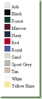 7.0 oz, 100% cotton preshrunk pique (Ash: 99% cotton, 1% polyester,