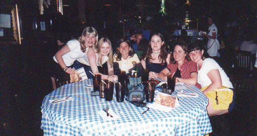 This is a bunch of people at Hard Rock Cafe. From left to right: Staci, Theresa, Katie, Sarah, Amy, and Bridget.