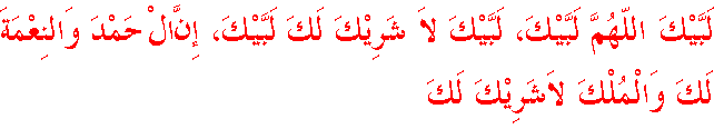 ‘“Aku datang memenuhi panggilan-Mu, Ya Allah, aku datang memenuhi panggilan-Mu. Aku datang memenuhi panggilan-Mu, tiada sekutu bagiMu, aku datang memenuhi panggilan-Mu. Sesungguhnya segala puji, karunia dan kekuasaan hanyalah milik-Mu. Tiada sekutu bagi-Mu.”