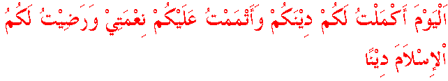 “Pada hari ini telah Kusempurnakan untukmu agamamu, dan telah Kucukupkan nikmatKu kepadamu dan telah Kuridlai Islam menjadi din (agama)mu.”