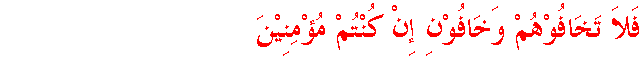 “Karena itu janganlah kalian takut kepada mereka, tetapi takutlah kalian kepada-Ku, jika kalian benar-benar orang yang beriman.”