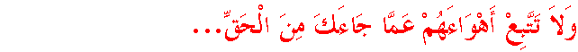 “dan janganlah kamu mengikuti hawa nafsu mereka dengan meninggalkan kebenaran (hukum Allah) yang telah datang kepadamu.”