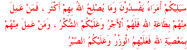 Óóíóáöíúßõãú ÃõãóÑóÇÁõ íóÝúÓöÏõæúäó æóãóÇ íõÕúáöÍõ Çááåõ Èöåöãú ÃóßúËóÑ ¡ Ýóãóäú Úóãöáó ãöäúåõãú ÈöØóÇÚóÉö Çááåö Ýóáóåõãõ ÇúáÃóÌúÑõ æóÚóáóíúßõãú ÇáÔøõßúÑõ ¡ æóãóäú Úóãöáó ãöäúåõãú ÈöãóÚúÕöíóÉö Çááåö ÝóÚóáóíúåöãõ ÇáúæöÒúÑõ æóÚóáóíúßõãõ ÇáÕøóÈúÑõ
