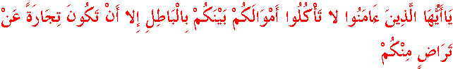 íóÇÃóíøõåóÇ ÇáøóÐöíäó ÁóÇãóäõæÇ áÇ ÊóÃúßõáõæÇ ÃóãúæóÇáóßõãú Èóíúäóßõãú ÈöÇáúÈóÇØöáö ÅöáÇ Ãóäú Êóßõæäó ÊöÌóÇÑóÉð Úóäú ÊóÑóÇÖò ãöäúßõãú