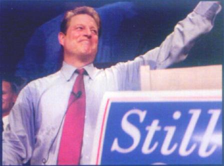 9.) while speaking at a teamsters conference (9/18/00) reminisces about "the lullabies I heard as a child" then sings "Look For The Union Label". That song was written for an ad campaign for the International Ladies Garment Workers Union in 1975 when Al was 27 years old. I wonder if his mum was still wipin' his butt for him, too?! His people tried to say that he'd gotten that song confused with a 1930's union ditty ("Don't Forget The Union Label") with a similar line. Even if his parents truly sang lullabies like that to him as a baby, beyond explaining a lot about Al in general, it's a sure sign that it must have been a real snore to grow up Gore. After continued ridicule, he now says he was just attempting a joke for his union audience (which in all fairness, did seem to possibly be the case when I saw the video clip), but this incident stays here as an example of his stupidity/dishonesty for not just saying so in the first place!