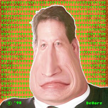 7.) says (According to U.S. News & World Report), on getting himself ready for his speech at the 2000 Democratic National Convention, "I often work with a couple of easels and big, white poster-board paper. It's kind of unusual. Standing in front of the easels, working with felt-tip pens, I like to draw ideas and how they relate to one another...This sounds weird." No foolin', Al! I picture it as being rather minimalist in style (Lots of ovals around trendy catch-phrases, and lines with arrows scrawled from one to another), and stiff in its composition, even for an Al Gore piece, with loud coloration vaguely reminiscent of a pro-wrestler hoping that if he just yells loud enough, it will make him and what he is saying sound more passionate and interesting! Actually, the weirdest, most unusual thing is that he uses poster-board...Usually, the dime-a-dozen bureaucrats, educrats, and AMWAY pitchmen use big PADS of newsprint paper (Note to Al: I'm sure they come in the requisite p.c. enviro-friendly recycled model) on easels, among their many visual aids. They're cheaper, and with each wave of ideas that he draws (WHATEVER they look like) he would kill less trees. Deep in his heart, Al Gore yearns for an over-head transparency projector. That would save the most trees of all!