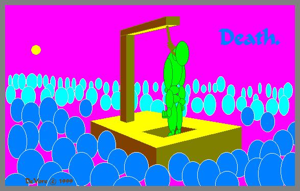 The claim that the death penalty is unconstitutional because it is cruel and unusual punishment doesn't hold water simply because it was the only acceptable price for capital crime at the time the Constitution was written (One indication is that capital crimes are mentioned specifically in the Constitution, and not in any way suggesting that it should be prohibited). If they didn't want that sort of thing going on, they would have said something right there and then about it, in no uncertain terms! I have a friend who insists that what they should do is TELL the guy on death row that he's going to be given a lethal injection, then strap him down to a table, roll up his sleeve, and inject him with just enough stuff to make him pass out for awhile. When he'd awaken with a head-ache, they'd tell him "I guess the first one didn't take...We'll get it right on the next try!" Of course they'd do this over and over again, playing head-games with him to convince him that each time it was going to be the real thing. Now THAT'S cruel and unusual! He's the same friend who said that each murderer should be put to death in the same way he killed his victims (for example, Karla Faye Tucker should have been pick-axed to death). Something quick and clean (unlike what many of their victims experience) like a simple, one-time lethal injection for a first-degree murderer is enough to satisfy justice. What is cruel and unusual is inflicting violent criminals on society.