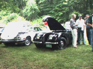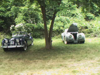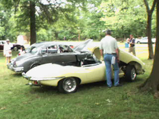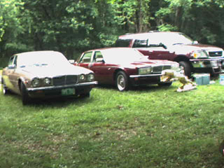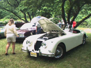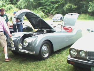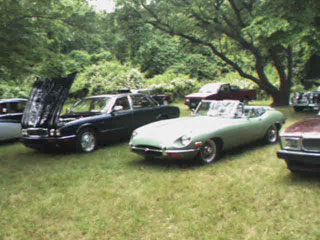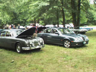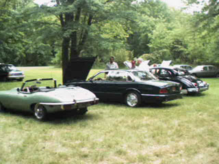Hosted by the Dawn Patrol Motorcycle Club in Sommerville NJ, on their own property, a beautiful tree studded open field with clubhouse, "The First Annual N.J. Jag Lovers Picnic" was a SMASHING SUCCESS!! The excellent planning and logistics by Michael Eck and friends (Dawn Patrol) made the day's activities all worthwhile, and provided a good time for all who came. They came from Vermont, Illinois, Michigan, Virginia, Massachusetts, Florida, Connecticut, Pennsylvania, Delaware, New York, Ohio, Georgia and of course New Jersey. The morning started off with Coffee and donuts around 8:30 am. Most everybody had arrived by 10:30, and the 50 mile caravan style drive left the grounds at 11:05. There appeared to be about 20 cars participating in the run. All that were involved reported a wonderfully scenic drive. The bunch returned around 12:45, and the Dawn Patrol had the food on the grille by then. Hot dogs, hamburgers, Philly steak sandwiches, French fried potatoes were had by all, cooked to order. Also served were Potato Salad, Macaroni Salad, and Cole Slaw. The atmosphere was as pleasant as the weather, sunny and in the mid 70's. There were approx. 40 -50 cars there, covering models such as XK120, XK140, XJ6, XKE's and a few old Mk’s, in various stages of restoration. Newer XJ's were to be seen too, including the "S" type. Some were Show quality, (IMHO) while others were on their way there. Lots of daily drivers, in various states, and a few that were real nice! Some people arrived without their Jaguars, due to various repair stages, but came anyway, in their beautiful Corvettes, and an older Nissan Pickup. It was exciting to meet, for the first time, all the people that had been exchanging mail from the various lists. The camaraderie never ended and everyone had compliments for one another. Also made were some new acquaintances, a very nice bunch of people, I must say. All very down to earth and supportive of each other, no matter what was driven in. Lumpers exchanging info with XKE people, Mark owners advising and teaching about their intricacies of their cars, XJ 40 folk admiring the XK140 and 120's, on and on the day went. Not a single ill word was uttered anywhere. This (again, IMHO) is how it really should be! Later in the afternoon, a 50/ 50 was drawn, along with door prizes of Leatherique products (donated), CDs or cassettes of 8 Hot Rod Rock songs called "Full Speed Ahead", whose jacket insert has a photo of the XK140, and more. Most people started to leave around 4:30 or so with a few hangers on staying a while longer. All in all, if you missed it, you missed it! But don't despair, It was the "FIRST" annual NJ Jag Lovers Picnic, and given the success of it, there will be many more! Below are some pics of the event. Next time maybe we'll see you and your car too!