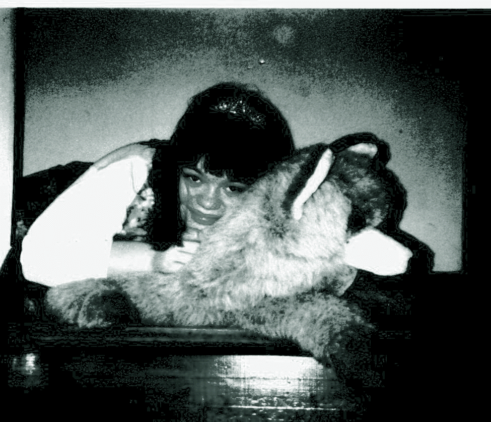 a rare pictue of the Harmonychan in her natural habitat-lounging on a big stuffed dog.Name:Harmony