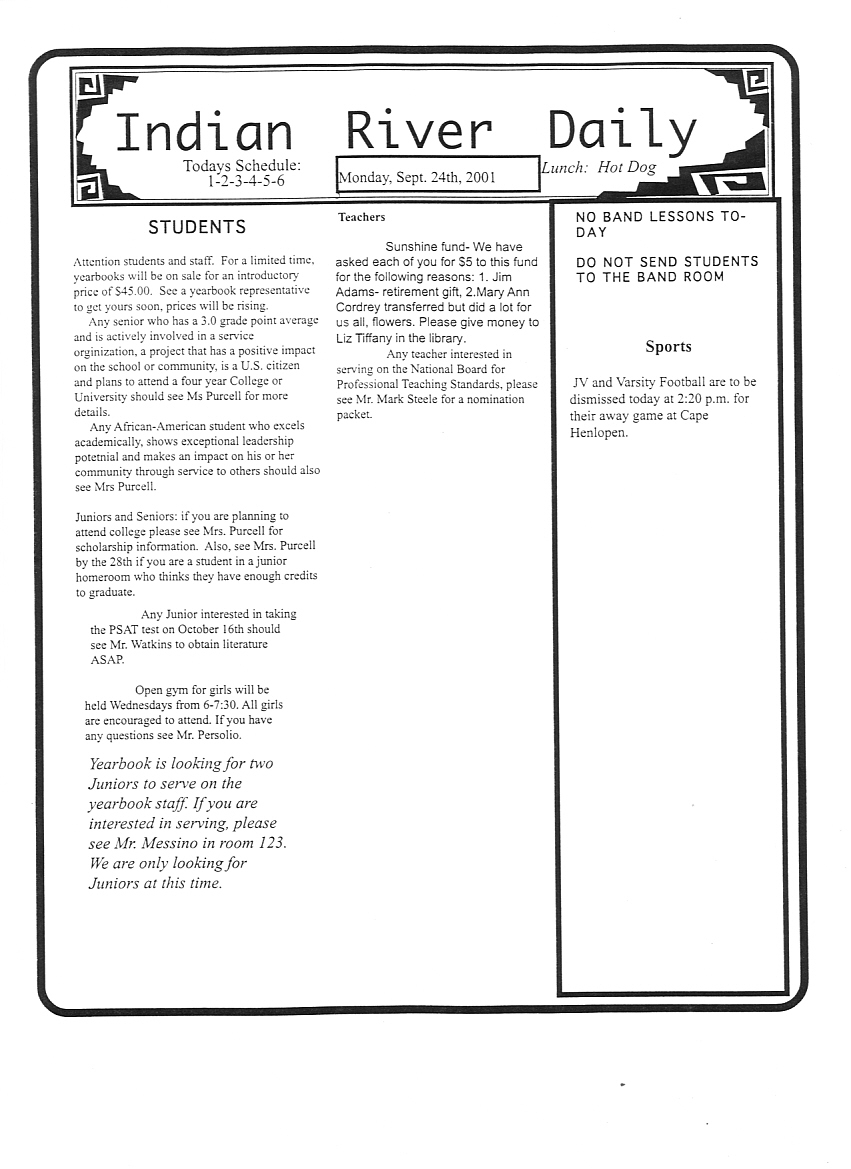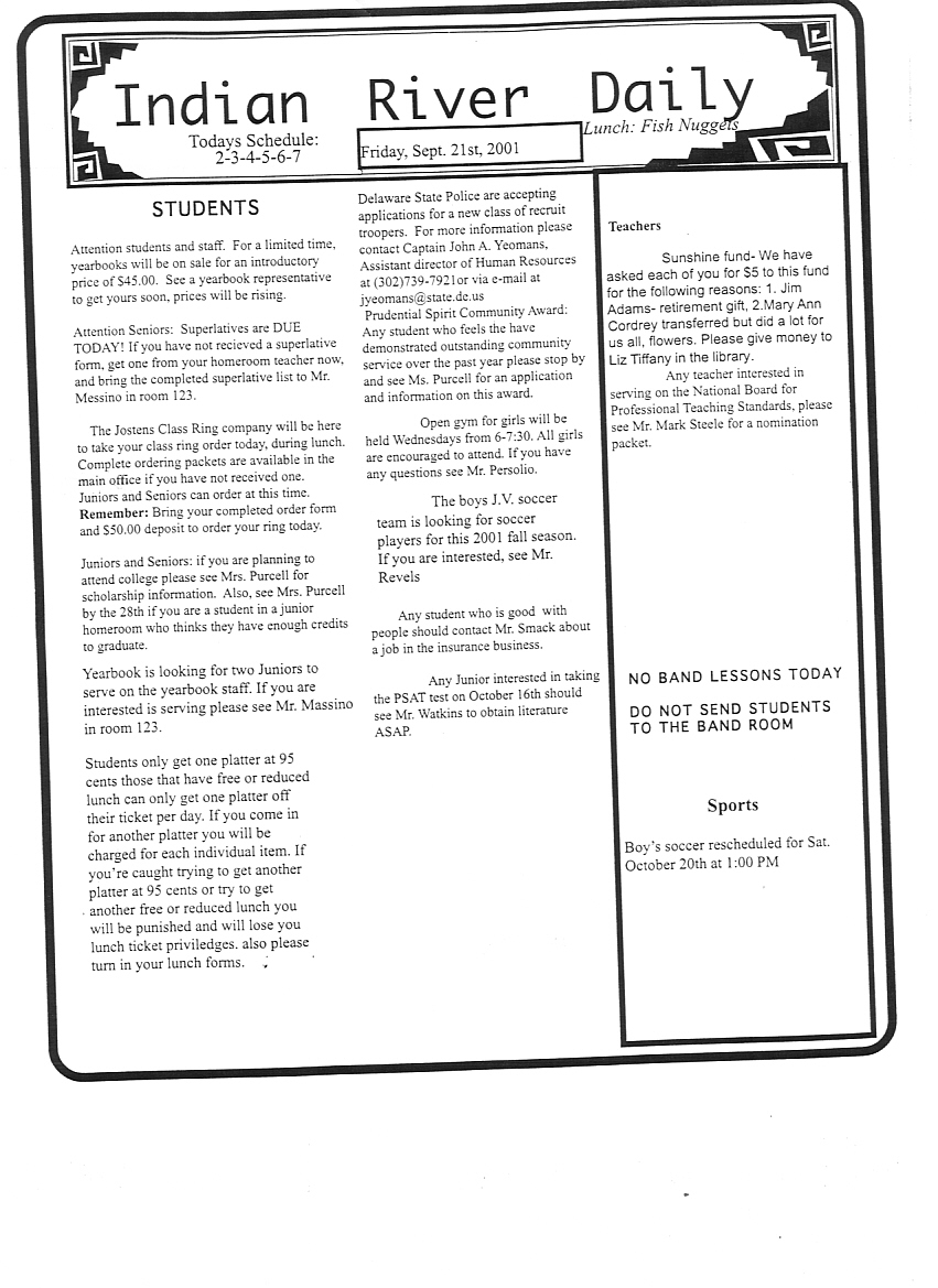 IRHS DAILY BULLETINS