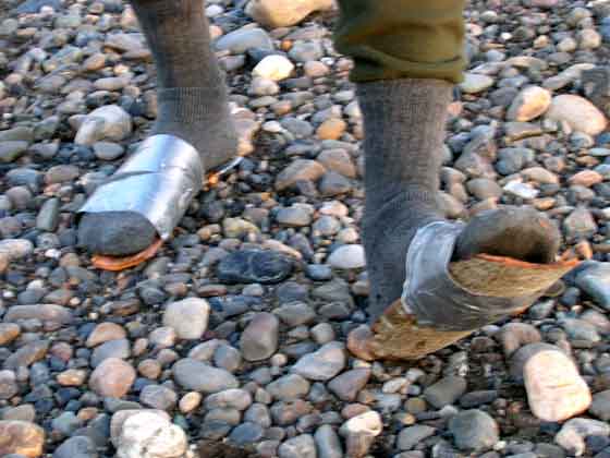 Als Gerhard seine Sandalen verlor, baute er eben ein neues Paar aus Birkenrinde: "Sie haben nicht solange gehalten wie meine alten Schuhe, aber funktioniert hat es schon."