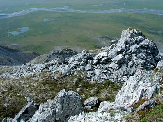 Der Oberlauf des Sheenjek sieht von den Bergkuppen eher schmaechtig aus: