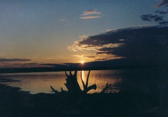 Bei Fort Yukon stoesst der Fluss zum ersten Male auf seiner Reise fuer mehrere Kilometer ueber den Polarkreis hinaus,um kurz danach seine lange Reise zur Bering-See in suedwestliche Richtung fortzusetzen.