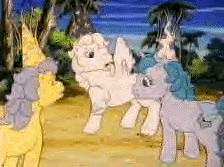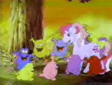 Since I am lucky enough to still have the old tapes I made of the My Little Pony series on TV, as well as the movie itself and the two specials, I decided to share some with others.  Here they are, in Real Player format (if you don't have realplayer, you'll need to download it from the Real Player Webpage in order to view the videos.  The quality on the movies is not perfect, as they must be compressed hundreds of times in order to stream on the web.  However, considering they went from about 600 megabytes down to about 3 or 4, it's pretty good.  As I get the chance, I'll add more videos, so check back often!  In addition, I used the equipment to capture single scenes from the videos which may be seen and taken for webpage use if desired.  Please, though, do not take the videos for use on your webpage.  In the information section of the movie, they are marked with my name to show they are from my site.  *NOTE*: it may take a few minutes for the movie to buffer as they are at average 15 minutes long.  If the first click yields an error message, try again as it may just be a server error. Enjoy!  Just click on the title of the movie to be taken to the theater.