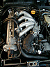 At this point I don't have the exhaust manifolds dropped from the car, but I decided I should since the car always sounded rather loud. I disconnected them from the Cat Y-pipe and sure enough, there was a crack through the 1-4 Y-pipe. The crack followed the weld all the way around where the number 1 and 4 are joined and even started cracking the saddle reinforcement (these are the steel manifolds, not the cast ones). I tried several things, I searched for a replacement from a local dismantler. He too found nothing but cracked pipes. I tried welding the seam again but this too failed because the original seam was just too hard to cover without cutting through the pipe. I opted for a set of Bursch headers. I know these will rust, but I plan to have them powder coated before use, for now I have the welded pipe in place, just to get it up and running. Finally, I have everything replaced, reinstalled and torqued and its time to fire it up! Surprisingly, it turned right over, as if the weeks in between were only an hour since I last shut it down. Ok, now to check for leaks, no cooling leaks, no oil leaks (yet), temp staying low, belts not squealing or singing, nothing burning, no smoke in exhaust, oil pressure good. Ok, let's go for a ride! I have to admit the first few minutes were tense but everything fell right into place. Everything but the balance! When I shifted to second and revved it up, it shook intensely! Well looks like I had the balancers off by a tooth or something. I thought about it and tried moving several teeth in both directions, but to no avail. I'm really beginning to wonder. I happened to stumble across a web-site which notes this problem. Talk about luck! It seems as if the balancers are stamped with an "O" near the top slot, designating "ober". Naturally I thought both the top and bottom gear mount the shaft with this slot on the pin. Not so, it seems as if pre-85 cars have the gears also marked "U" for "unter" and this is the slot that the bottom gear mounts on. I had the lower balancer 180 degrees out! I found an article that read "this case will actually cause more vibrations than without ANY balancers running". Boy, they weren't kidding. Alas, problem solved. So now it seems as if all is good. Well, not quite. It seems as if the retensioning of the Cam belt split the crankshaft seal and it had begun to leak oil at the rate of about a drop a second. I wasn't going to get far like this. I decided to pull all the gears and belts back off, and rebuild the oil pump too. I did so and alleviated all traces of oil leaks from this area. I've also drained the oil twice in two weeks now to remove any debris that may have found its way in during the rebuild and I plan to do the same with the cooling system. I've also installed Bosch +4 plugs, new cap and rotor and K&N Air and oil filters.