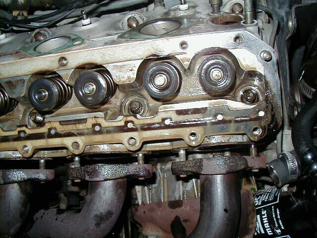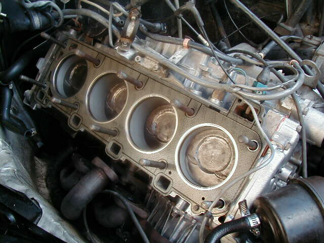 How it all started: Well it seemed as if the car had always run hot, from day one. While driving this car home from FL (In live in DE!) it overheated near Ft. Lauderdale due to a crack in the radiator housing. I limped to an auto parts place and bought some two-part epoxy and managed to make a bond strong enough to get me home. I did however need to pull over every two hours or so for more water! After making it home (I liken this to the journeys west for Lewis & Clark) I replaced the radiator and was happy to see no leaks, although it continued to run hot. I drove it this way for several weeks, keeping the temp down by turning the A/C on to run the fans non-stop. I know this is no solution, but when money is tight, you do what you can! Nevertheless, the car suffered a heater hose blowout, which dumped practically all of my coolant in a matter of seconds! I replaced the hose (near the heater valve) but noticed several other hoses were bulging, an indication of severe overheating. Well, before I could address the rest of the hoses, matter of factly, the day after I repaired the heater hose... ***KA-BAM*** head gasket failure! I knew it the moment I drove away from my house... that tell tale puff of white smoke and the milkshake consistency of the oil on the dipstick. OK this is bad! So, what now? Pay a dealership 2 grand to replace the gasket? Not me, no way. I always wonder how good a job it is if I cant view it with my own eyes, plus there was more wrong here than just the gasket blowing. Sooo... In I dove....