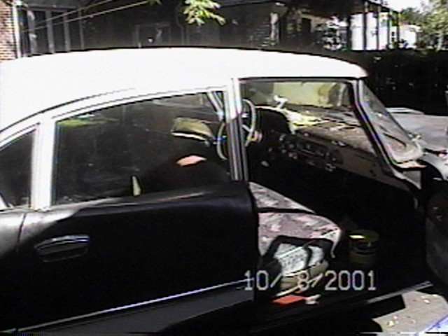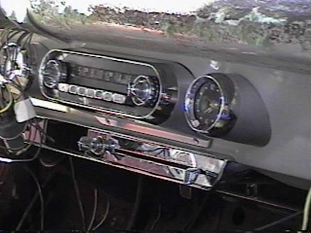 These next pictures were taken 10-8-01. The car is coming along well. The dash has been re-installed, but not all wiring is done yet. I've repainted the gauges the correct Argent Silver color, and the dash is "close" to the original color. I used a "close" color since I couldn't quite match the correct Ditzler Desert Beige. I welded up new seat bracket bottoms and installed steel plate into the flooring for support.