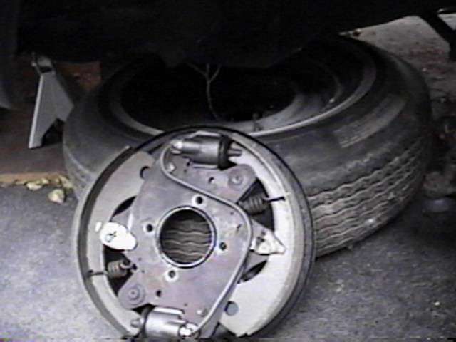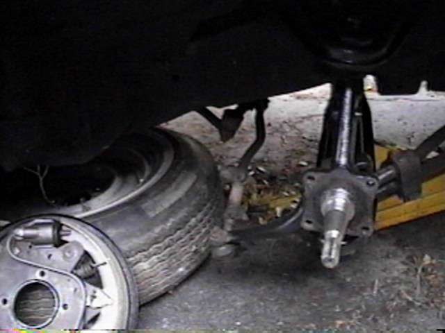 These pictures were taken 11-2-01. I've been working on the wiring and the brakes, mostly. I installed a new master cylinder, 6 new wheel cylinders, cleaned and re-packed the wheel bearings, installed relined brake shoes, put on new flexible brake hoses front and rear, and ran new steel brake lines everywhere. As you can see, I cleaned up the front spindles and painted them before installing the brake assemblies. I had the drums turned, too!