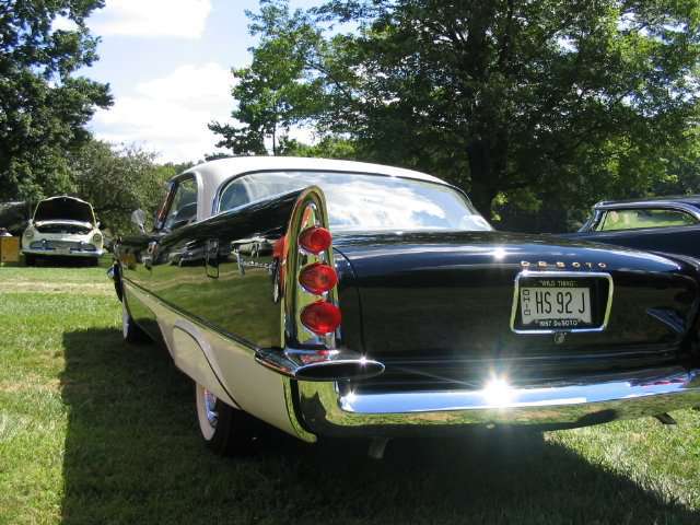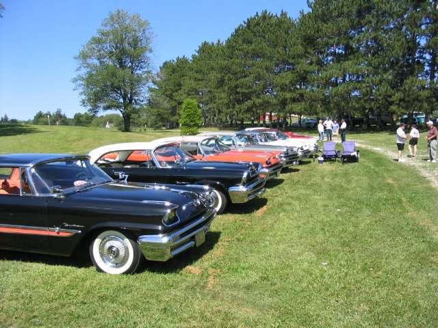 My wife Lorraine and I attended this event for the fourth consecutive year. The 3-D picnic (Delightful, Delovely, DeSoto) is a social gathering of DeSotos and their owners from northeast Ohio and northwest PA. John Nosol and Leon Haddix are the organizers, and everyone has a great time socializing and sharing DeSoto stories! This year there were 17 DeSotos in attendance. The following are pictures of the 1957 models there. I have a few pics of other years for you non-1957 fans, and can send them to you if you contact me. Click to enlarge each preview.