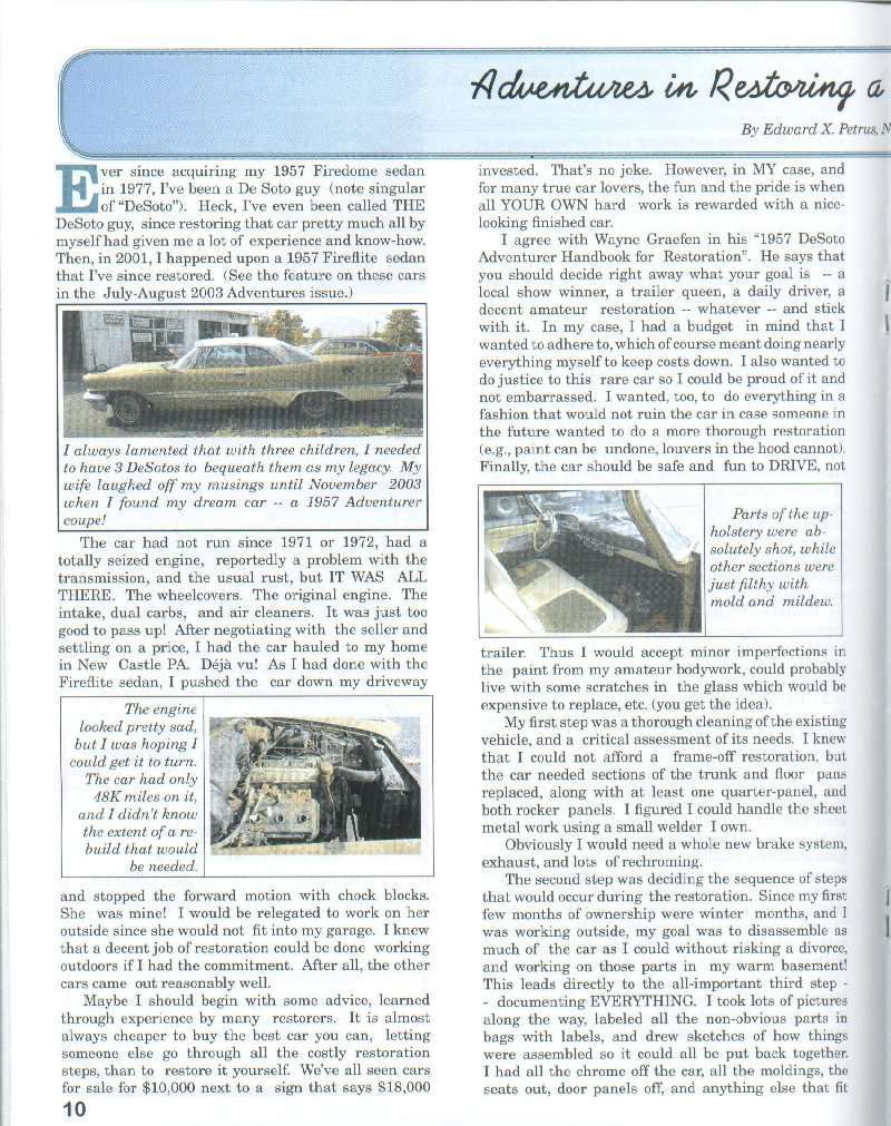 These are from the Adventures July/August 2003 edition. These pages were written before I acquired my Adventurer.