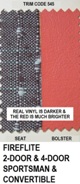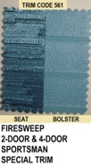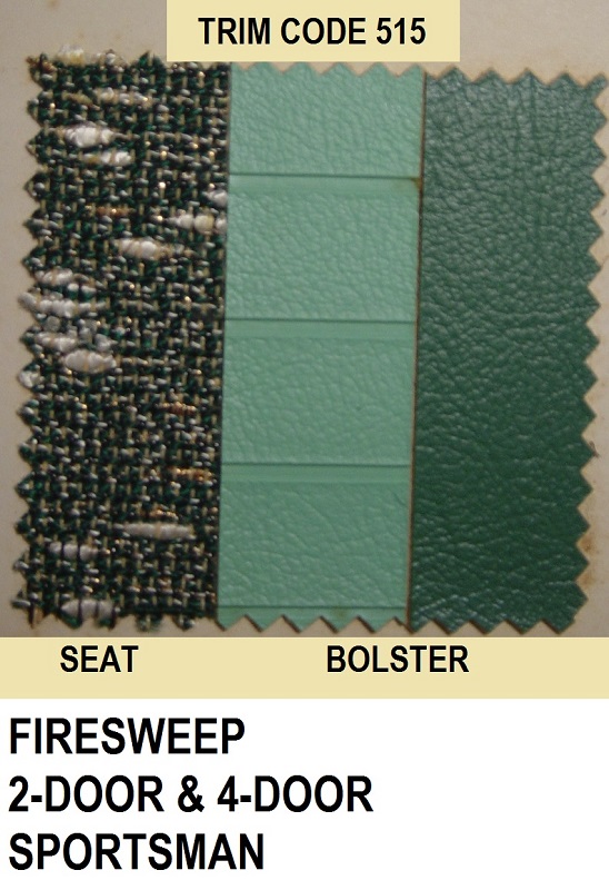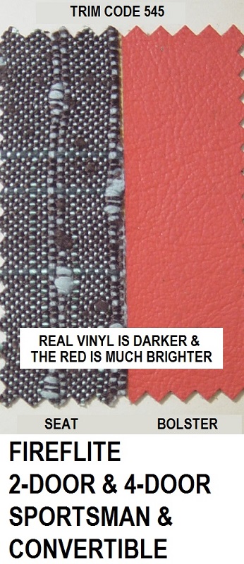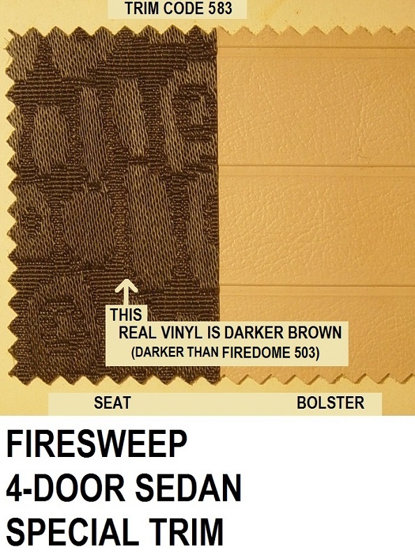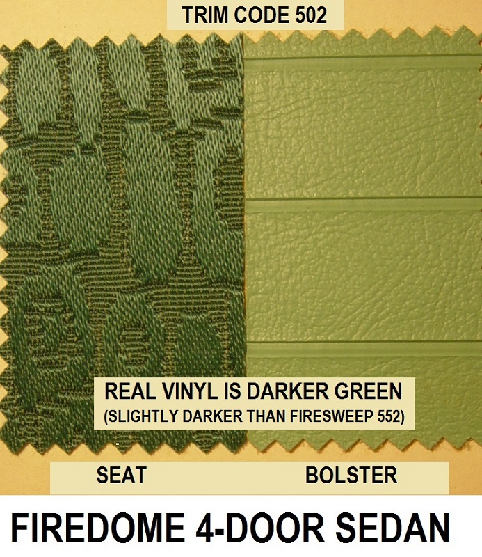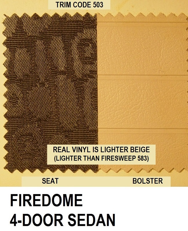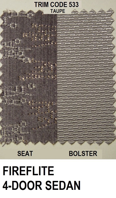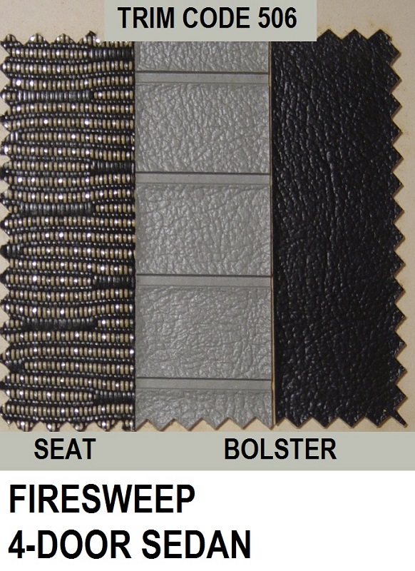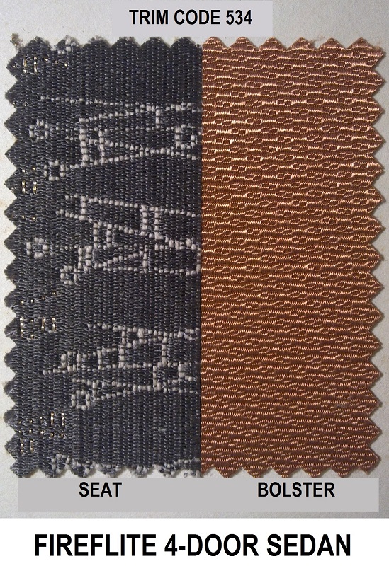 I've been wanting for quite some time to document the correct interior materials (cloth, vinyl) and colors to match the COWL CODE from the firewall tag. This should be a valuable resource for restorers who want to know what their interior should look like! Please, if you have nice interior that YOU KNOW IS CORRECT, send me pictures of it, along with the cowl code from your car. I'll update these pages as I get more photos. And PLEASE, if you see any error in what I've posted, let me know!
