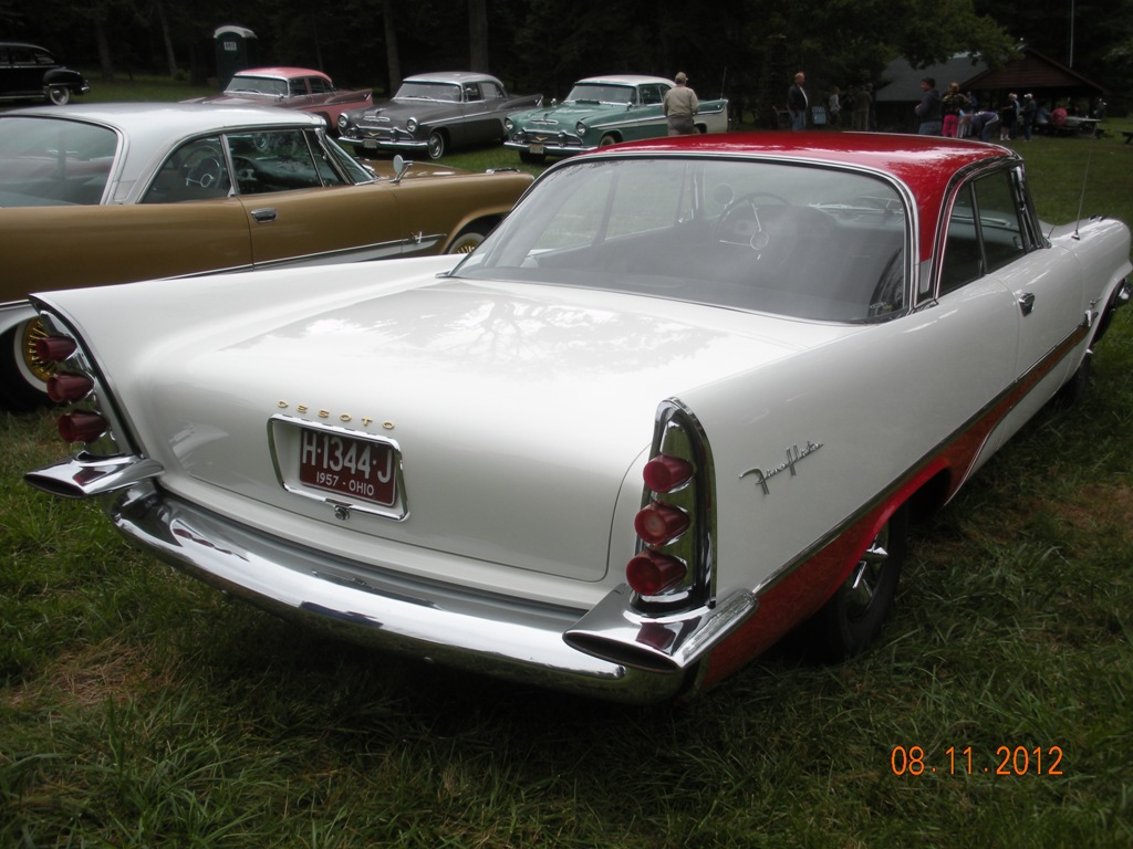 Lorraine and I drove our Adventurer coupe to this wonderful event, despite the cold, windy, and misty conditions. I think the weather was the reason more DESOTOS didn't attend, but the regular crew of DeSoto OWNERS still made it! There were 3 1957 cars there -- our Adventurer, and the beautiful cars of Dave Vershall and Pat Caffey. Although 3 57s isn't a lot, it's still a pretty good showing for a local event like this. Larry Cola was there but without his '57 Firedome, and Joe Starc was having some brake work done on his '57 Fireflite. Also, Leon Haddix was there, but as noted last year, he sold his fantastic '57 Firesweep to Neal and Rosemary Stolowich from Kentury (so it wasn't there, either!) We also were very happy to meet J. T. Vawter, a 1957 owner want-to-be, and avid lover of these cars.