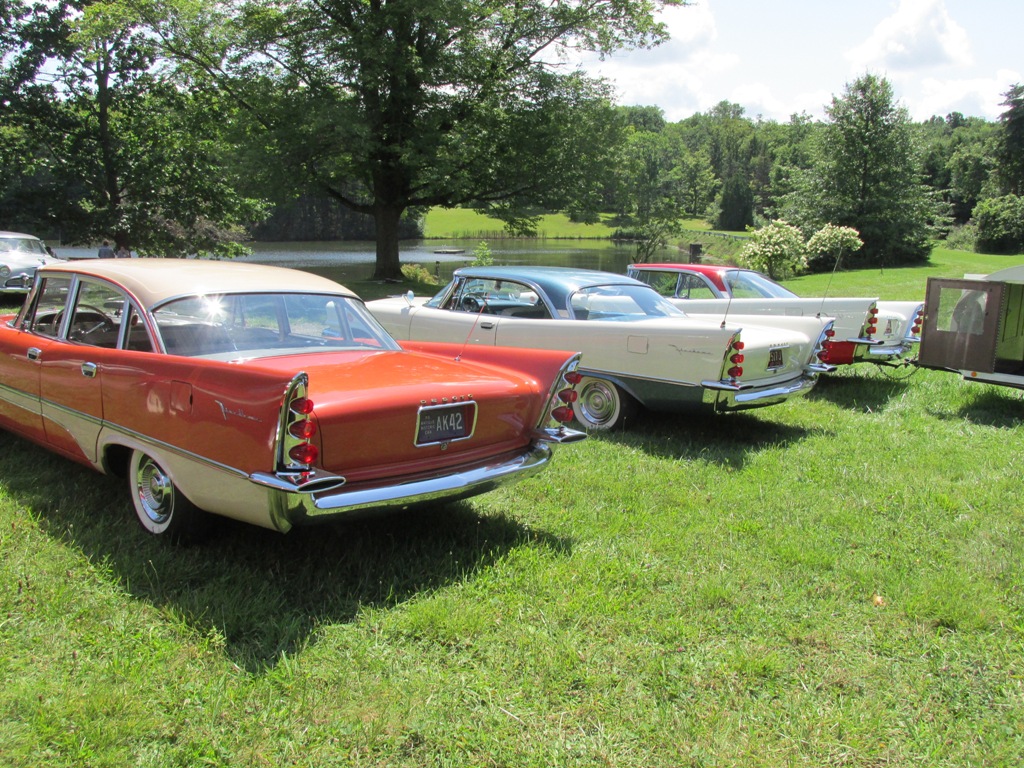 This pic shows a lineup of the '57 and '58 finned cars, with John Nosol's '58 in the front of the row.
