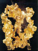 Gold is the heaviest of the naturally occurring minerals, nineteen times as heavy as water as compared to lead which is only eleven times heavier than water. This is why it is possible to pan it from stream beds. It crystalizes in massive forms, grains, flakes, dendritic forms, plates, nuggets, and, rarely, in octahedral, cubic, and rhombdodecahedral crystals. It may be found naturally alloyed to silver in a combination known as electrum from the Greek word for sunshine. This same word once referred to amber however. A cup fashioned from metallic electrum was said to emit rainbow flashes if filled with something poisonous. In very rare cases, it can occur in quartz crystals. It ranges from golden yellow and silver-white to orange-red.