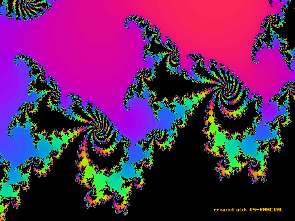 Sämtliche Fraktale dieser Seite wurden mit TS-FRACTAL berechnet und liegen hier im GIF-Format vor, um direkt mit WWW-Browsern betrachtet werden zu können. Die Bilder haben die Auflösung 1024x768/256 Farben.