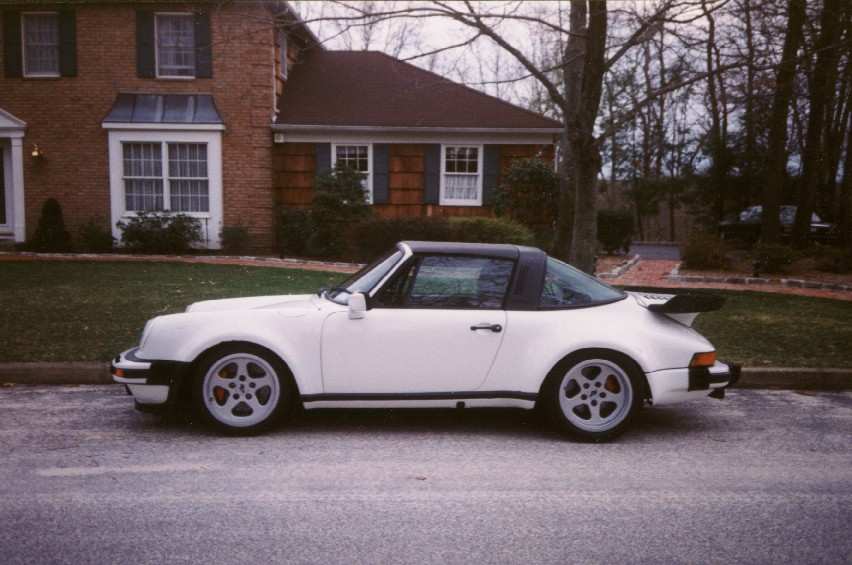 The White 911 below is one of my best friends' cars. It started life as a rusted out, yellow 76' 911 Targa. He has spent the last 5 years turning it into the car you see here. It has a 3.6 liter Normally aspirated motor, 930 Turbo corss drilled brakes, a rollcage, Turbo Flares, Ruf Wheels, etc. I think it looks great, don't you?
