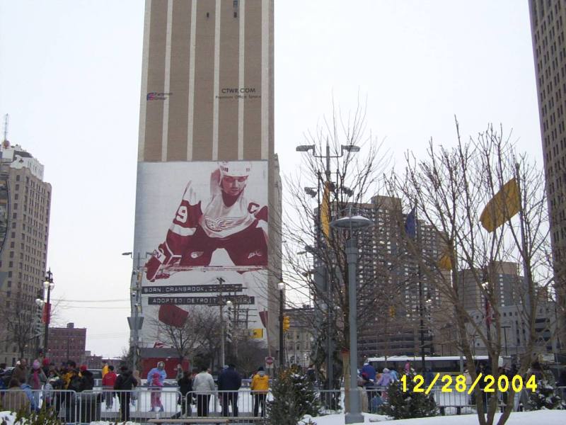 Before and after shots of Campus Martius Park. Can you see the difference? The Soldier's and Sailor's Monument has been moved and the ice rink has been installed. Steve Yzerman saw it all happen! Click each pic for a LARGER version...then click HERE for an Yzerman story.